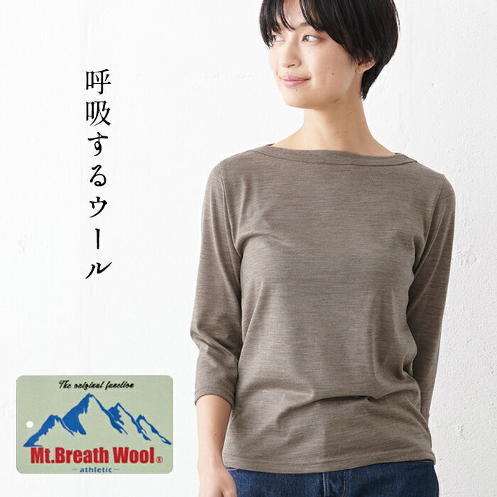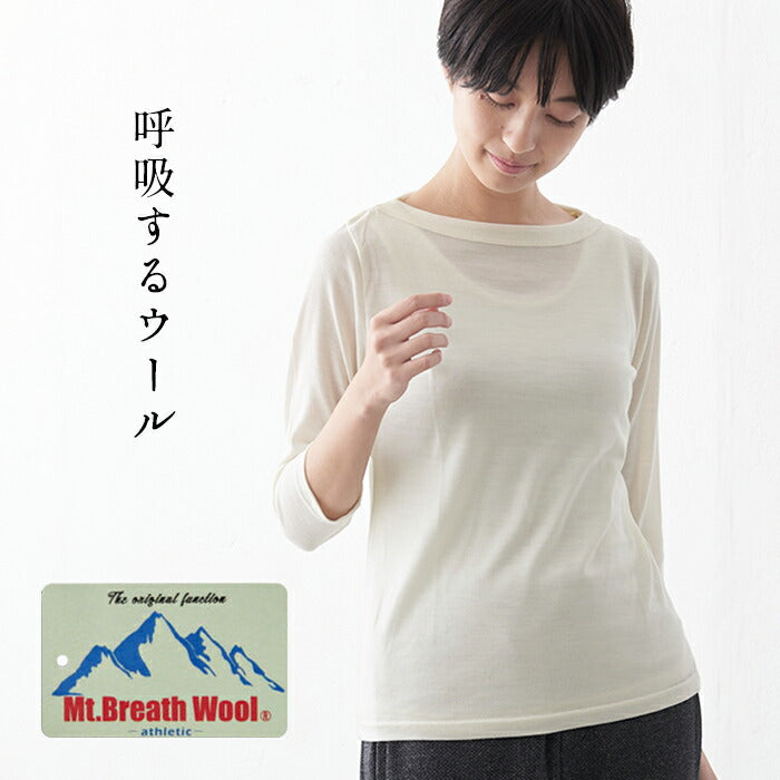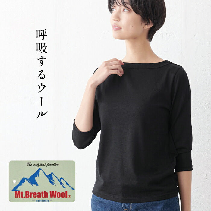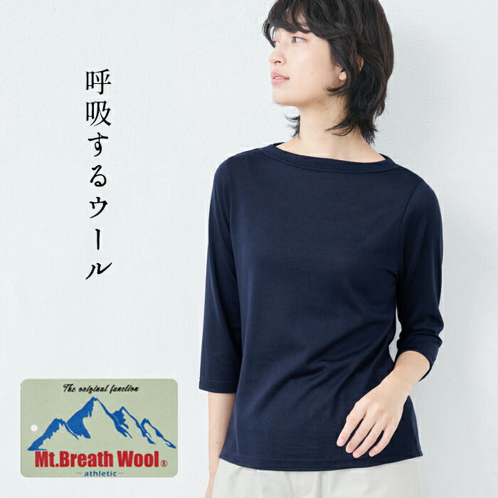 呼吸するウール100% ボートネック七分袖Tシャツ