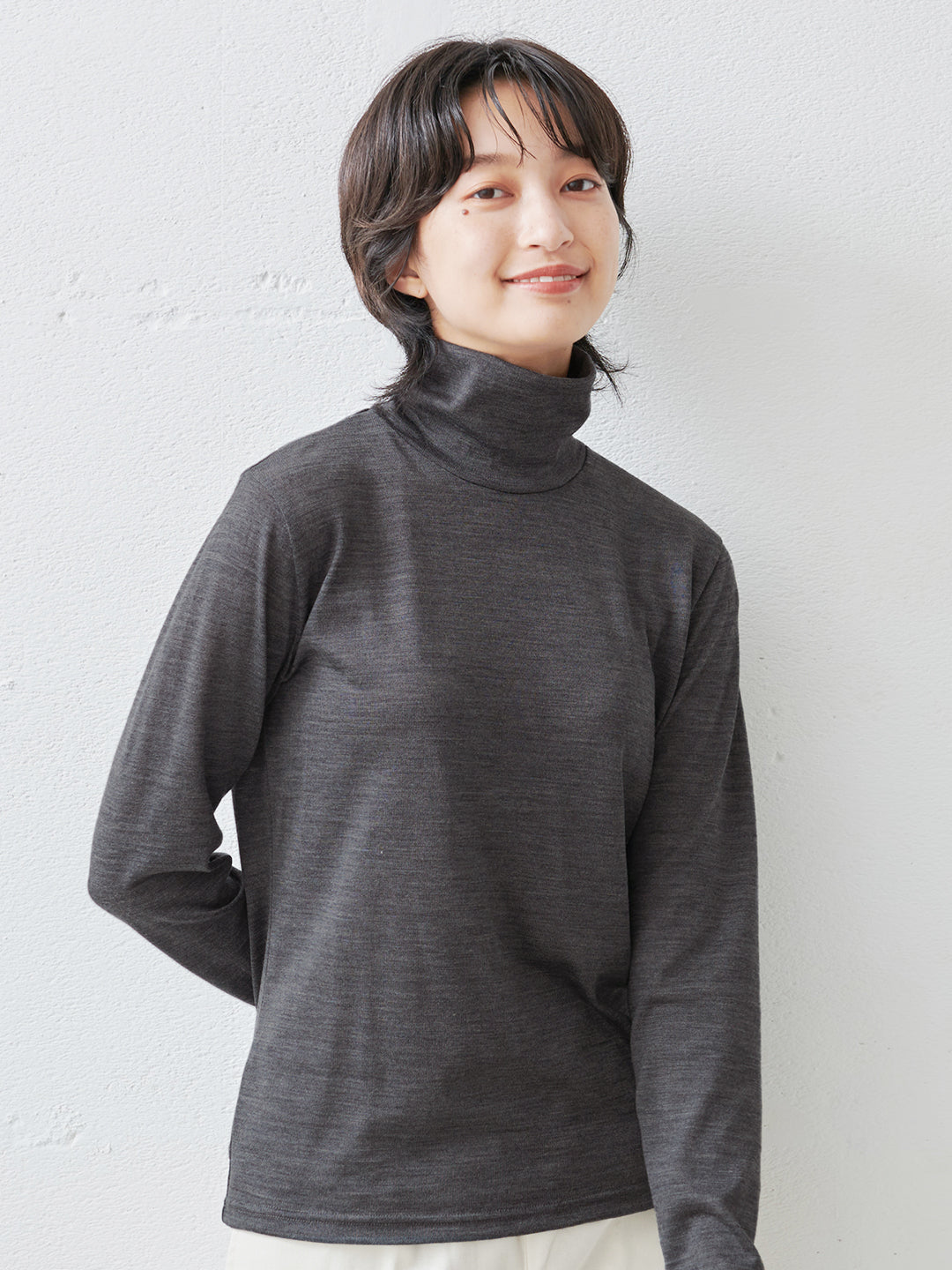 呼吸するウール100% タートルネックプルオーバー